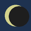 最大食となる頃、洞爺湖町では太陽の右下側が欠けた状態になります。食分は0.844で、近年見られる日食としては、相当大きな欠け方です。