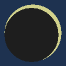 東串良町の部分日食は6時12分26秒に始まり、太陽の右上側から欠け始めます。このときの太陽高度は10度です。高度は少し低い目ですが、観測には支障のない範囲です。最大食は7時21分59秒で、高度は25度です。食分は0.963で、先にも書きましたように金環日食が見られます。また終了時刻は8時42分33秒で、高度は42度です。この瞬間に太陽の左下側から月が離れてしまい、2時間30分7秒間にわたって続いた日食もこれで終了します。
