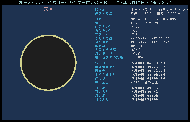 | 金環日食の始まり | 6時44分10秒 | 245.5 | 182.9 | 27.3 |